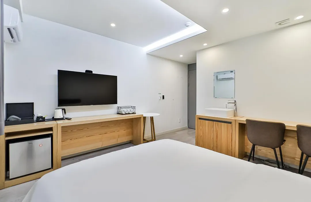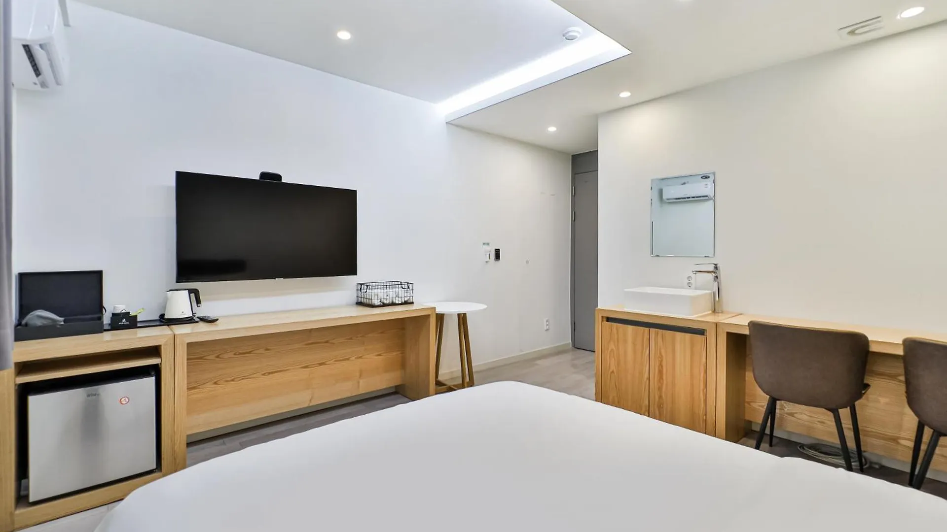 Sloth Hotel Busan Seomyeon с 80 номерами, оснащенными кофеваркой, телевизором с плоским экраном и спутниковыми каналами, звуконепроницаемыми окнами, идеально подходит для пребывания в Пусане. В номерах есть система климат-контроля, а также кофеварка. В ванных комнатах предоставляется отдельный туалет и душ, а также фен и полотенца.